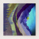 Un paysage abstrait aux textures uniques, un paysage montagneux violet et lavande avec un ciel bleu époustouflant et un troupeau d'oiseaux dans les tons violet, lavande, beige, jaune et rose.