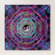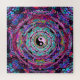 Un mandala turquoise, violet et bleu avec un yin yang au milieu par Amelia Carrie.