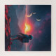 Un astronaute se dresse sur un paysage alien rocheux et rouge sous un ciel plein de planètes et d'étoiles. La scène est surréaliste avec une grande planète qui brille dominant l'horizon.