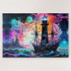 Puzzle Mer orageuse, phare de bateau Lune Abstrait