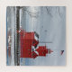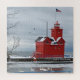 Phare rouge en Hollande, Michigan avec sept cygnes en hiver.