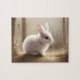 Puzzle personnalisé avec l'aquarelle la plus mignonne petit lapin dans la forêt avec des tons de terre douce et lumière douce du matin. Personnalisez facilement le nom ou laissez-le en blanc. Objets correspondants disponibles dans mon magasin - Kate Eden Art.