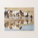 Une belle bande de pintos sauvages trouve du rafraîchissement dans un trou d'eau.