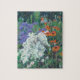 Dieses Puzzle ist ein ideales Geschenk für einen Jigsaw-Enthusiasten und hat ein farbenfrohes Bild von Pupies in einem Garten, von einem originellen pastellfarbenen Ölgemälde von Judy Adamson.