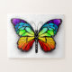 Papillon monarque réaliste dans toutes les couleurs de l'arc-en-ciel sur un arrière - plan blanc. Papillon arc-en-ciel.