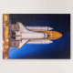 Space Shuttle Atlantis Poster présente une photographie de Space Shuttle Atlantis, attachée à son réservoir de carburant externe orange vif et deux propulseurs de fusée sur Launch Pad 39A au Kennedy Space Center de la NASA en Floride à Night.