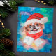Le Noël de Chien de race japonaise présente une aquarelle d'un Chien de race japonaise avec un Casquette de Père Noël rouge, un foulard de Noël rouge et une aquarelle de galaxie.