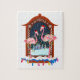 Flamants roses Noël Noël puzzle de Noël. Design propose deux flamants roses portant des chapeaux santa dans une scène de vacances avec des lumières de Noël aussi ! Joli puzzle pour les familles ou les amis qui vivent dans un endroit tropical avec des flamants roses, ou ceux qui aiment les flamants roses !