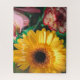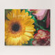 Puzzle à thème botanique avec photo d'un bouquet de fleurs colorées : gerbera jaune et oeillets rouges rayés symbolisant la dévotion, l'amour et la fascination. Design optimiste et glamour. Un cadeau inhabituel pour toute occasion spéciale. Vous pouvez supprimer le texte "Ça va être ensoleillé" ou le remplacer par votre propre message (cliquez sur "Personnaliser ce modèle"). Pour d'autres modifications (style de police, couleur de police, position du texte), cliquez sur "Modifier la conception".