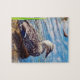 Une photo d'une femelle canard colvert debout dans la zone peu profonde d'un étang, avec des ondulations s'éloignant d'elle dans un mouvement circulaire. Copyright Kimberly J Tilley.