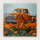 La couleur orange est la couleur principale, avec un camion orange, des fleurs orange et des vêtements orange.