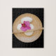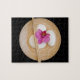 La disposition de style de zen de la fleur d'orchidée, le caillou et le bambou roulent sur l'arrière - plan noir