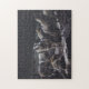 De beaux loups gris dans un meuble, reposant sur un rocher au crépuscule.