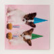 Ce joli dessin met en vedette deux chiots de Papillon portant des casquettes de fête avec gâteau et bougies #papillon #puppy #dog #cute #party #fête de naissance #cake #fête de naissance #animal #nature #rose #girly #feminine #célébration #jigsawpuzzle #cadeaux #fun #stockingstuffers #jeux #cadeaux #noël #fêtes #anniversaire