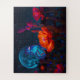 Papillon mignon sur pavot psychédélique au clair de lune - puzzle