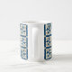 Diese hübsche Tasse besticht durch das Design eines Puzzle-Flipper-Patchwork, das vom amerikanischen Handwerker Ira Blount aus dem 20. Jahrhundert entworfen wurde. Die geometrischen Formen in den Farben Blau, Weiß und Grau schaffen ein angenehmes Gesamtmotiv. Diese Tasse ist ein traditionelles, rustikales Aussehen, das auch ein zeitgenössisches, grafisches Ambiente hat und ein originelles Geschenk für den Quilter, Kanalisation oder antiken Liebhaber Ihres Lebens ist. Ursprüngliches Quilt im Anacostia Gemeindemuseum der Smithsonischen Institution.