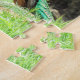 Un paon de couleur brillante trône au sommet d'une colline basse sous les arbres. Il semble surveiller la campagne environnante. Le bleu vif du cou et de la tête se détache au centre du puzzle, contre les feuilles verts d'olivier des arbres derrière.