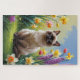 Puzzle Peinture Siamese Chat Fleurs de Printemps