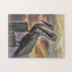 Un art numérique design d'une paire de pélicans sur un quai au coucher du soleil.