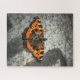 Un petit papillon Tortoiseshell sèche ses ailes au soleil sur la surface fissurée. Photo d'anniversaire de papillon.