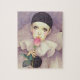 Puzzle de 8" x 10" avec une image vintage des années 1980 du triste clown Pierrot avec une larme dans l'oeil et un rose à longue tige dans la main. Pierrot est un personnage qui a évolué en apparence avec Romantic, Decadent, Symbolist, et les premiers Modernist Theatre et art. Cette image est l'image populaire de Pierrot dans les années 1980. Voir l'ensemble de la collection Tubular 80s Puzzle dans les ACTIVITÉS | Section Puzzles.