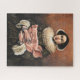 Puzzle portant le portrait d'une dame quasi élibile tenant la tête d'un cochon