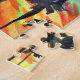 Plage de coucher de soleil avec palmiers art original de Sacha Grossel. Coucher de soleil rouge et orange rêvant d'art sur le thème de la plage dans un style original aquarelle. Surf thème coucher de soleil.