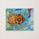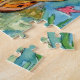 une oeuvre décorative d'un plongeur en mer profonde portant un ancien costume de plongée qui voit le monde souterrain comme un puzzle décoratif.