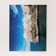 Puzzle denteux de photo avec des maisons construites sur une falaise en mer Méditerranée dans la ville Polignano de plage une jument sur la côte orientale de la Puglia dans les sud de l'Italie un beau jour d'été.