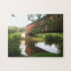 Une scène paisible d'un pont couvert et de elle rouges est réflexion dans le courant ci-dessous.