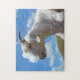 Chèvre sur la colline. Chèvre blanche avec des cornes assis dans l'herbe, avec colline et ciel nuageux en arrière - plan.