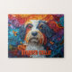 Il s'agit d'un abstrait portrait de chien coloré d'un chien de race de Collie barrée dans le style de l'art de la découpe en papier. Il s'agit d'un grand puzzle pour les amoureux de les chiens et les propriétaires de Collie barrée.