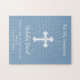 Célébrez le jalon spécial d'une première communion sainte avec ce don. Sur fond de bleu poussiéreux doux, une croix complexe aux rayons délicats qui s'échappent vers l'extérieur symbolise la grâce divine de ce jour significatif. La typographie moderne en blanc pur présente élégamment les mots "Première Sainte Communion" à côté du nom personnalisable, reflétant la pureté et l'innocence de l'occasion. Cela fait un cadeau parfait personnalisé pour un garçon spécial sur sa première communion sainte !
