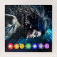 Un art apaisant représentant une belle femme aux cheveux soufflant dans le vent et un bel arrière - plan bleu céleste éthérée bleu. Citation, "Respire et relâcher." Joli chakras illuminé art spirituel.
