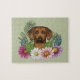 Puzzle Rhodesian Ridgeback Chien Tête Fleurs d'été Vert