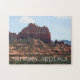Puzzle de 11" x 14" avec l'image d'une aquarelle d'une formation de roche rouge prédominante et reconnaissable près de la ville de Sedona au pied des falaises de Crimson. Le point de repère distingué est Snoopy Rock, une ressemblance à Snoopy le chien des dessins animés Peanuts. De Snoopy Rock offrent des vues panoramiques sur Sedona et ses formations géologiques environnantes. Voir la collection Arizona Puzzle dans la section HOME.