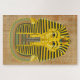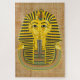 Masque funéraire du roi Toutankhamon sur fond de papyrus.