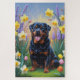 Un chien gai s'installe paisiblement sur une pelouse verdoyante, entourée de fleurs printanières colorées sous un ciel bleu doux. Cette peinture à l'huile numérique saisit un moment de sérénité avec des coups de pinceau expressifs, des couleurs chaudes et un sentiment de joie douce.
