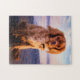 Ruby Cavalier King Charles Spaniel Chien chiot au coucher du soleil puzzle