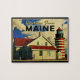 Un ciel bleu dramatique avec d'énormes nuages est la belle toile de fond de ce phare design disant "Salutations du Maine". Une image moderne de style vintage pour une ambiance rétro amusante.