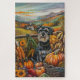 Célébrez la beauté de la chute avec cette peinture vibrante d'un chien assis à côté d'une généreuse moisson de Thanksgiving. Les riches couleurs d'automne des citrouilles, des tournesols et des paysages rustiques des fermes créent une atmosphère chaleureuse et accueillante, parfaite pour toute décoration saisonnière amoureux des chiens.