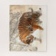 Belle mère et tigre d'enfant dans un Puzzle de neige Wonderland en hiver