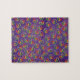 Des panneaux de paix colorés éparpillés contre un arrière - plan violet.