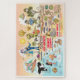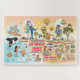Une scène lumineuse et colorée offre une vue spectaculaire de la Californie du Sud - personnages farfelus sur la plage et le désert de SoCal présentant Los Angeles, Orange County, San Diego, Père Noël Barbara, Riverside, Palm Springs, El Centro, Anza Borrego et Joshua Tree parcs ainsi que les villes frontalières de Tijuana, Tecate et Mexicali. Cette charmante scène a tout - un surfeur pend dix tandis qu'un orque saute de l'eau, des animaux de zoo accueillent les touristes, les amateurs de vin font un toast comme un T-Rex rugit un défi et un randonneur est remarqué par un OVNI et bien plus encore...