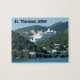 Vue unique sur St. Thomas, avec ses eaux bleues des Caraïbes, et un grand bateau de croisière amarré juste au-dessus des collines de l'île.