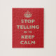 Hilarious ! If you're getting tired of signs telling you to Keep Calm and Carry On (or any of the thousands of variations out there), then this Stop Telling Me to Keep Calm design is perfect for you! In the red and tan from the original World War II Keep Calm posters created during the Blitz.