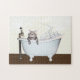 Gris chat tabby dans une baignoire à pied de griffe à l'ancienne juste suspendu puzzle amoureux des chats