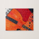 Le personnel musical et les notes flottent au-dessus d'un violoncelle et d'un piano dans des rouges et des dorés intenses. Le clavier se distingue par ses couleurs vives et son arrière - plan foncé.