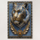 Cette oeuvre 3D imite l'artisanat d'un ouvrier de l'orfèvrerie spécialisé dans l'or, l'argent et d'autres métaux précieux. Il présente un portrait de tigre en 3D dans les tons or et argent métalliques, dressé contre un arrière - plan de feuilles de style baroque complexe. L'oeuvre est imprimée pour capturer les textures riches effets visuels des éléments métalliques.