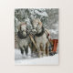 Un beau puzzle dépeignant une scène d'hiver d'un tour de traîneau. Le traîneau est tiré par deux chevaux forts. Un puzzle d'amusement à remonter particulièrement pour ceux qui comme des images de neige. s